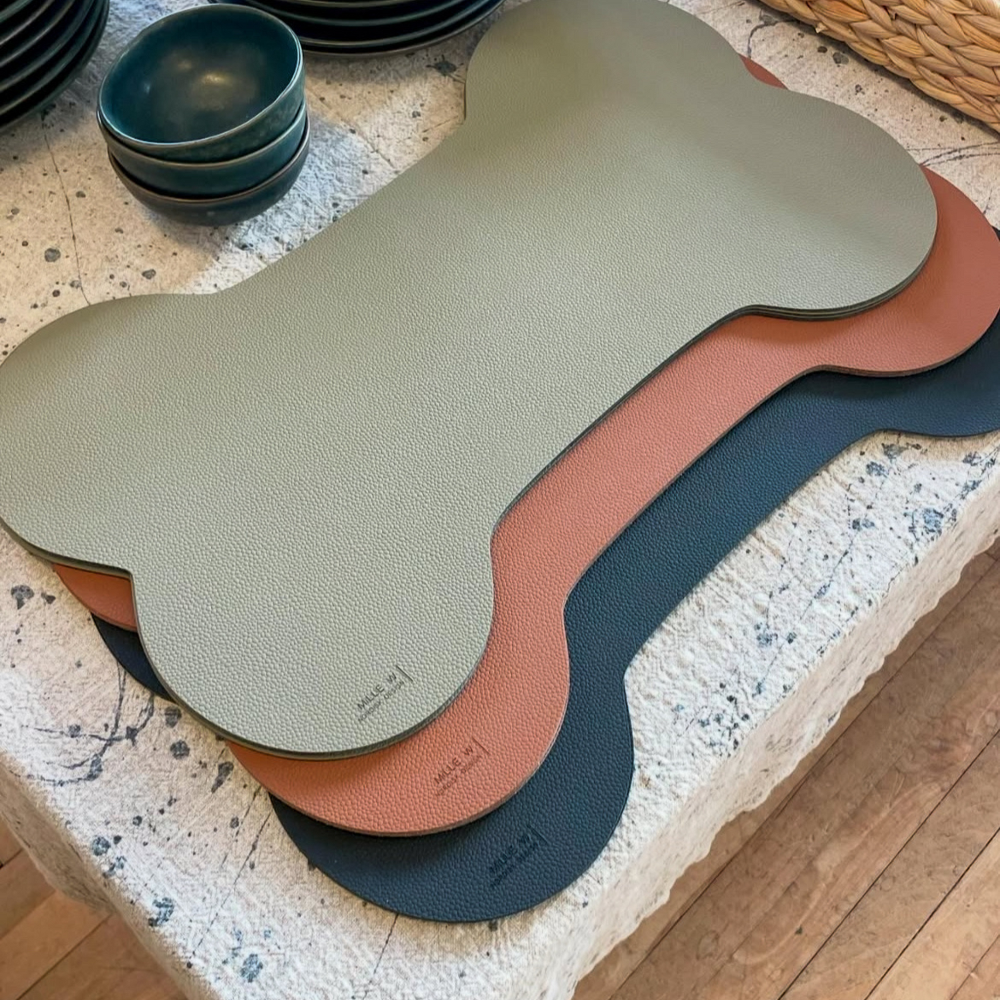 MiLLE W NORDISK DESIGN ble grunnlagt i 2011 av danskfødte Camilla Wallin i Kullavik, like sør for Göteborg. Med bakgrunn fra mote- og livsstilsbransjen kombinerer hun skandinavisk formspråk og funksjonelt design i produkter laget for både hjem og hund.En rød tråd i kolleksjonene er bruk av GRS®-sertifisert resirkulert lær, fremstilt av overskuddsmateriale fra mote- og møbelindustrien, blandet med naturgummi. Alt produseres i egne lokaler i Sverige, noe som sikrer kort vei fra idé til ferdig produkt og full kontroll på hele prosessen.